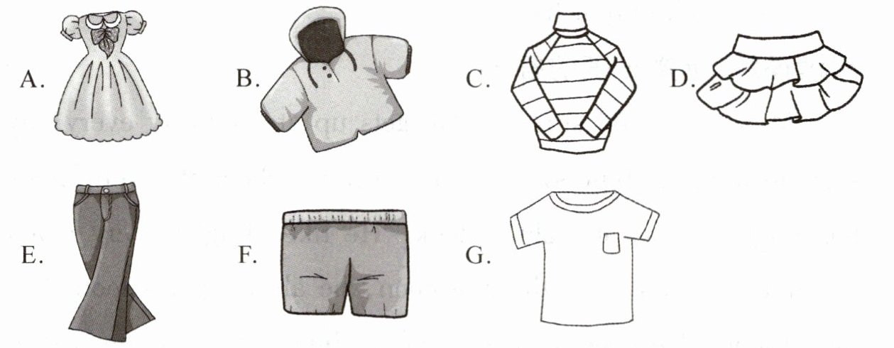 任务一:阅读短文,选出 Jane 的衣橱里拥有的衣服,将序号写在横线上并涂上颜色。
