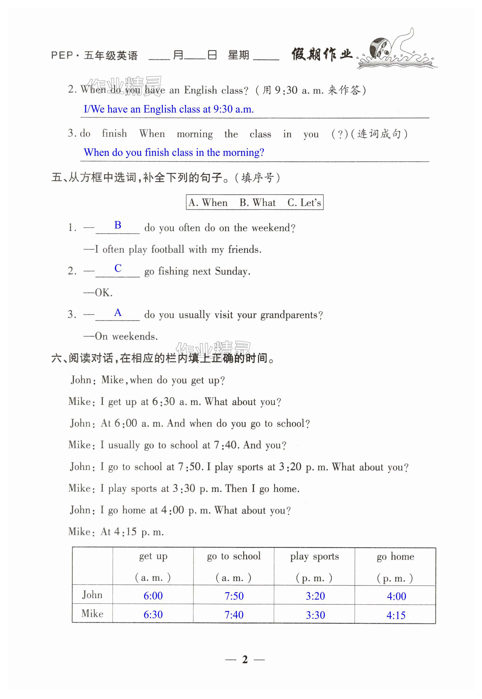 注:目前有些书本章节名称可能整理的还不是很完善,但都是按照顺序排列的,请同学们按照顺序仔细查找。练习册 2025年金峰教育暑假作业假期计划五年级英语人教版 答案主要是用来给同学们做完题方便对答案用的,请勿直接抄袭。