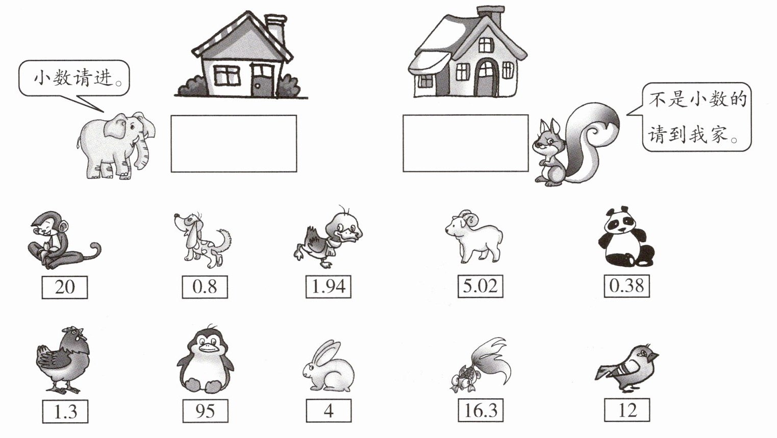 【答案】:小数:0.8、1.94、5.02、0.38、1.3、16.3 不是小数:20、95、4、12