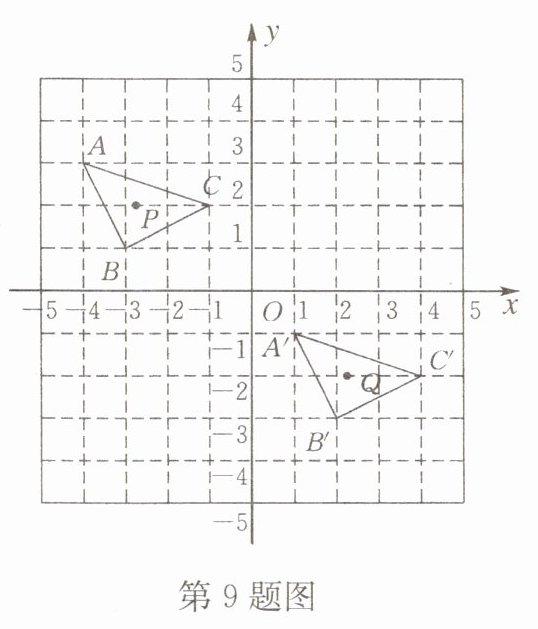 9. 如图所示,$\triangle A'B'C'$是$\triangle ABC$经过某种变换后得到的图形,如果$\triangle ABC$中有一点$P$的坐标为$(a,2)$,那么变换后它的对应点$Q$的坐标为____