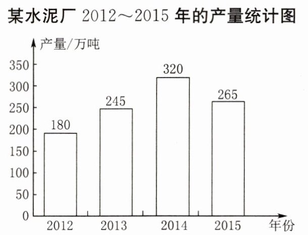 (1)求$2012 - 2015$年水泥总产量,就是将这四年的产量相加,即$180 + 245 + 320 + 265$。