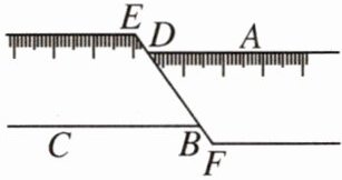 4. 如图,一把矩形直尺沿直线断开并错位,点 E,D,B,F 在同一条直线上.若$∠ADE=$$125^{\circ }$,则$∠DBC$的度数为(