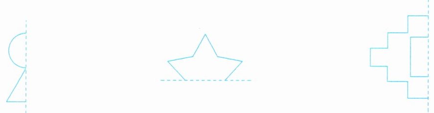 【答案】:按照上述方法画出三个图形以虚线为对称轴的另一半(由于无法直接绘制图形,学生可根据原理自行完成绘制)。