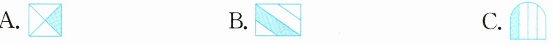 1. 下面各图中,涂色部分可以用$\frac{1}{4}$来表示的是(