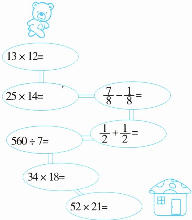 - $25×14$:把$14$拆分为$10 + 4$,$25×10 = 250$,$25×4 = 100$,$250 + 100 = 350$。