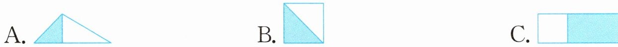 1. 下面各图,涂色部分能用$\frac { 1 } { 2 }$表示的是(