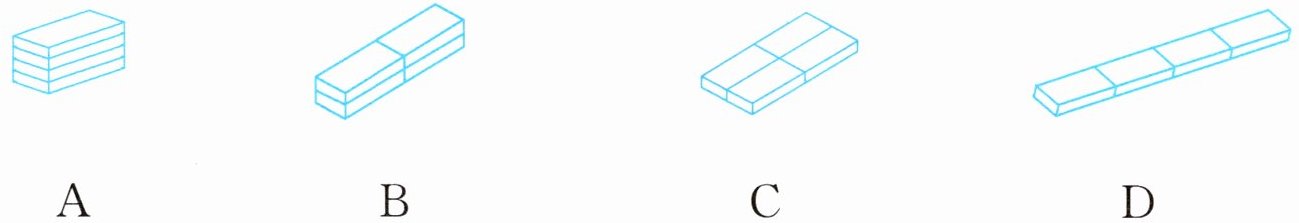 4. 将 4 个长 10 厘米、宽 6 厘米、高 1 厘米的长方体盒子包成一包,最省包装纸的包装方法是(