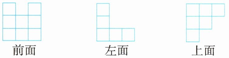 3. 如果右图分别是从一个正方体模型(由若干个相同的小正方体拼成)的前面、左面、上面看到的相应的图案,那么该模型共由(