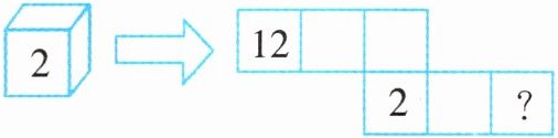 把 2,4,6,8,10,12 六个数依次写在一个正方体的正面、背面、两个侧面及两个底面上。然后,把正方体展开(如下图),最左边的正方形上的数是 12,最右边的正方形上的数是