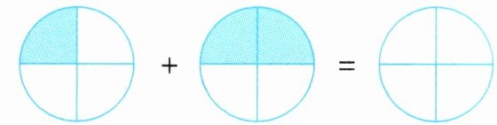 $\frac{1}{4} + \frac{2}{4} = \frac{3}{4}$