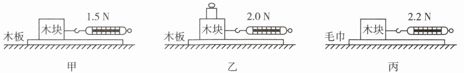 2. 在“探究影响滑动摩擦力大小的因素”的实验中,小明用完全相同的木块分别做了如图所示的甲、乙、丙三个实验。