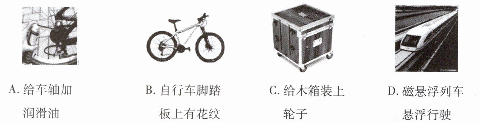 6. 如图所示的四个实例中,为了增大摩擦的是 ()