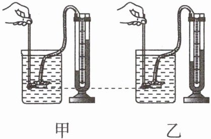 2. 如图所示,小明将压强计的金属盒分别放入甲、乙两种液体中,从图中可以得到的结论是()
