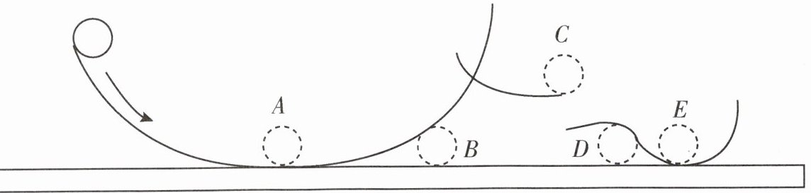 图中所有的弧线都是固定的,问:小球由静止朝箭头所指方向滚下,最终会落在什么地方?
