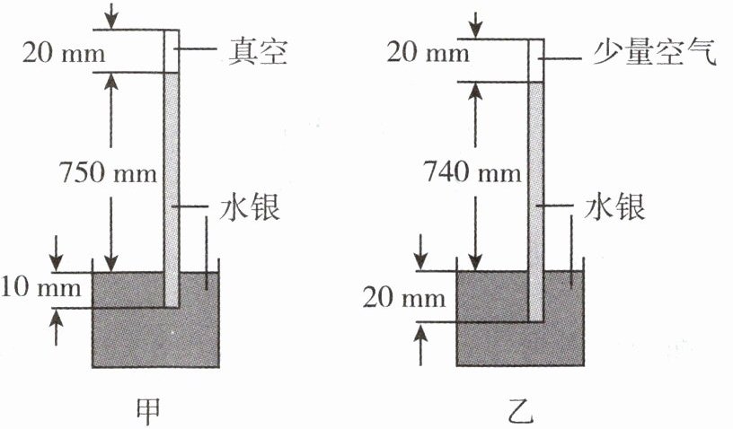 (2)乙图中玻璃管内空气的压强相当于______mm高水银柱所产生的压强。