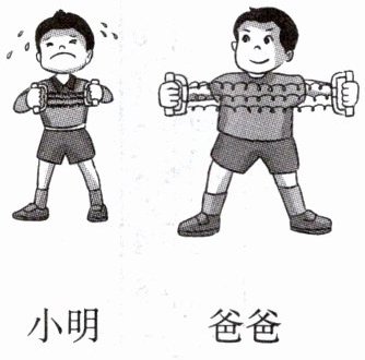 4. 小明和爸爸比谁的力气大,比赛中他们拉同样的三根弹簧,结果如图所示,由比赛结果可知______的力气大,理由是______。