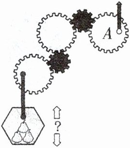 如图所示,如果把箭头向上拉,那么底下吊着的梨是上升还是下降?
