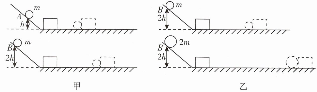 (3)如图乙所示,______越大的钢球将木块撞得越远,这反映出物体的动能与物体的______(以上两空均选填“质量”或“速度”)有关。这可以模拟研究汽车______(选填“超载”或“超速”)带来的安全隐患。
