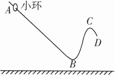 5. 质量为$m$的小环穿在固定的光滑曲杆上,从某点$A$由静止释放后沿曲杆运动,如图所示,不计空气阻力。下列说法正确的是()