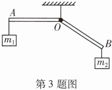 3. 如图所示,杠杆$AOB$用细线悬挂起来,分别在$A$、$B两端挂上质量为m_{1}$、$m_{2}$的重物时,杠杆平衡,此时$AO$恰好处于水平位置,$AO= BO$。不计杠杆重力,则$m_{1}$、$m_{2}$的关系为()