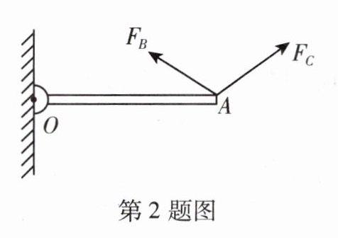 2. 如图是一根重为$G的均匀木棒OA$,能绕支点$O$自由转动,现用力作用于木棒的$A$端,使木棒$OA$始终在水平位置上保持平衡。当力由$F_{C}方向逐渐转到F_{B}$方向时,力的大小变化为()