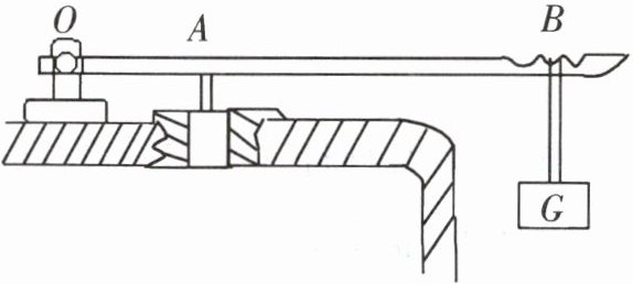 如图所示是锅炉保险阀门,当阀门受到的蒸汽压力超过其安全值时,阀门就会被打开。如果$OB= 2m$,$OA= 0.5m$,阀门底面积$S= 1cm^{2}$,锅炉内气压的安全值$p= 6×10^{5}Pa$,则$B处所挂的重物所受的重力G$应多大?(不考虑大气压强的影响)