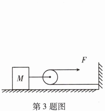 3. 如图所示,滑轮重、绳重不计,滑轮与绳子间摩擦不计,若物体M重为200N,当物体沿水平方向匀速移动时,受到的摩擦力为120N,则绳自由端的拉力F= ______N。