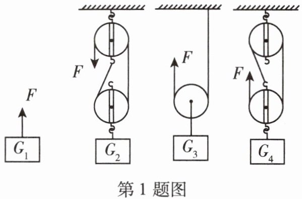 1. 如图所示,用同样大小的力把重物匀速拉上去,可以判断出物重最大的是(不计摩擦和滑轮自重)