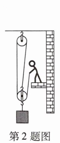 2. 利用图中的滑轮组匀速提升900N的重物时,若忽略滑轮自重、绳重及摩擦,人对绳的最小拉力为______N。
