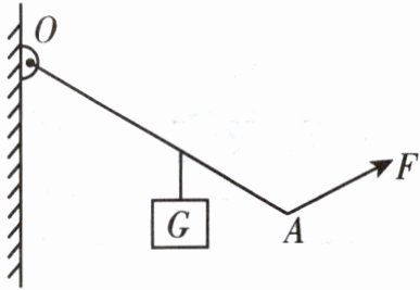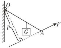 9. 如图中杠杆 $ OA $ 处于平衡状态,请在图中画出动力 $ F $ 对支点 $ O $ 的力臂 $ l $。