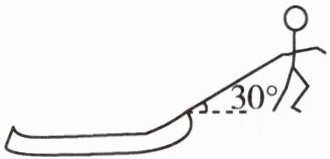 8. 如图所示,在水平冰面上有一重 $ 300 \, \text{N} $ 的雪橇,小明用 $ 50 \, \text{N} $ 的力拉动雪橇,拉力的方向与水平方向成 $ 30^{\circ} $ 角,请你在图中画出雪橇所受拉力的示意图。