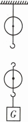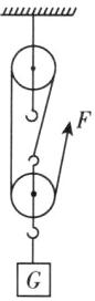 6. 在如图所示的滑轮组上绕线,使匀速提升重物 $ G $ 时最省力。