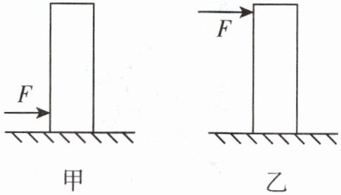 2. 如图甲所示,静止在水平面上的长方体木块,在水平推力F的作用下向右滑动,这说明力可以改变物体的____;仅改变推力F作用的位置,如图乙所示,木块向前倾倒。比较甲、乙两次实验,说明力的作用效果与力的____有关。
