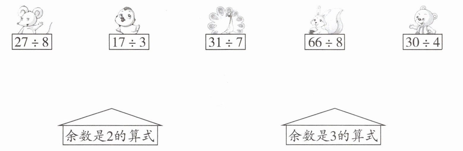 $17÷3$、$66÷8$、$30÷4$与“余数是$2$的算式”相连;