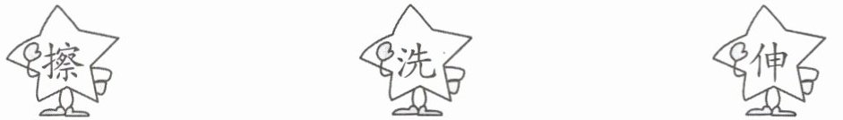 2. 早上醒来,我在摇摇晃晃的草叶上( )懒腰,用一颗露珠把脸( )干净,把细长的触须( )得亮亮的。