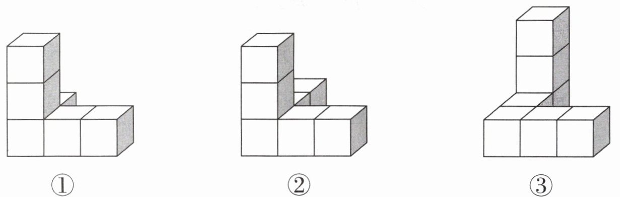 1. 小红描述了一个立体图形,一共用了4个正方体,从正面看是4个正方形,从上面看是3个正方形,上面的正方体在左边。小明按照描述摆出的图形如下图,小明摆的对吗? 不对的话应该怎么改?