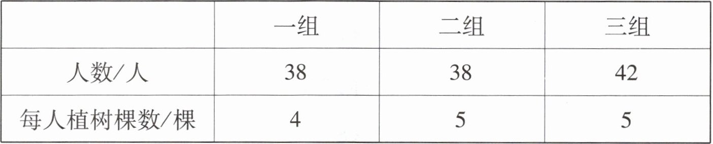 |每人植树棵数/棵|4|5|5|