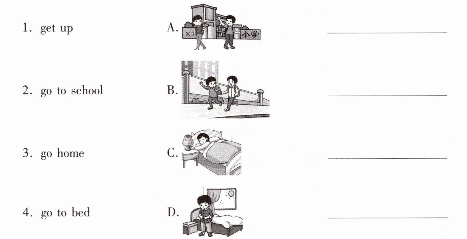 )4. 星期一早上你起床晚了,妈妈催你快点儿,她应该说:______A. Hurry up!