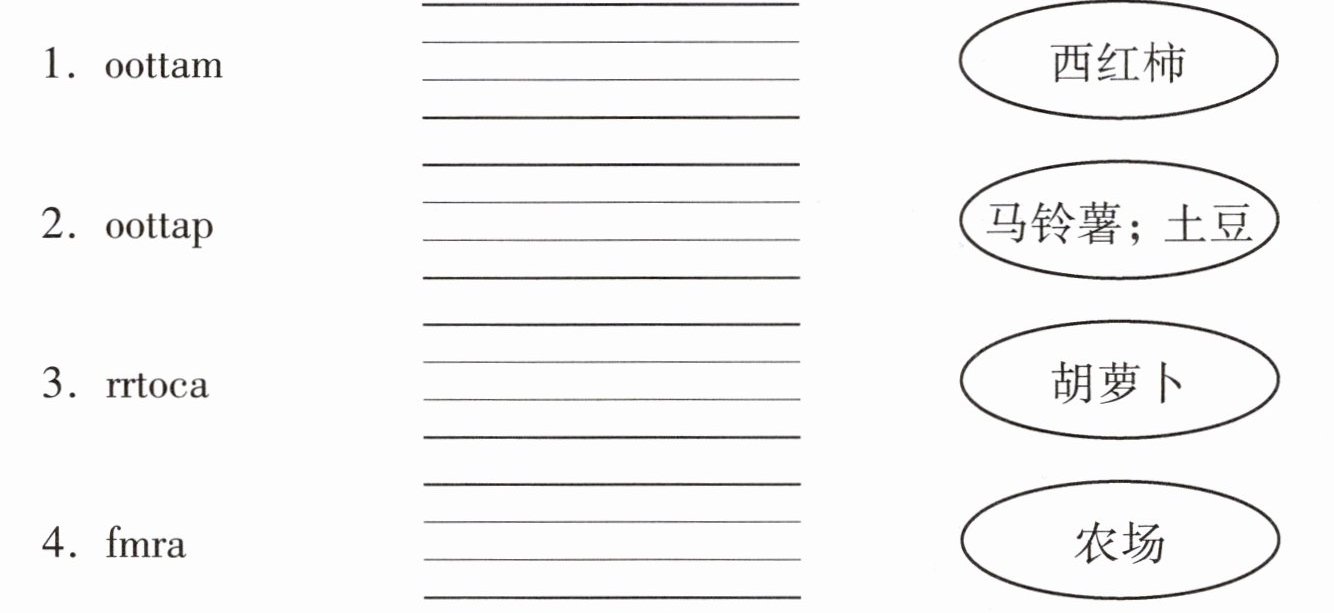 Ⅰ. 根据所给汉语意思,将下列字母重新排列,组成正确的单词写在四线三格上。
