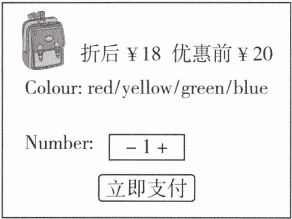 五、Amy 在购物平台上买了一个书包。请你根据她的截图信息判断句子的正(√)误(×)。