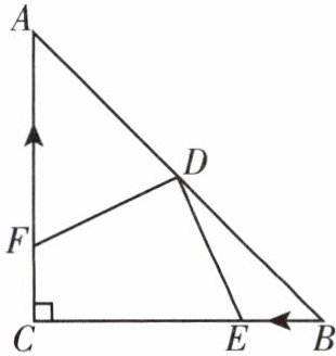 9. 如图,在$ \triangle ABC $中,$ \angle C = 90^{\circ} $,$ AC = BC = 4cm $,点D是斜边AB的中点,点E从点B出发以1cm/s的速度沿射线BC方向向点C运动,点F同时从点C出发以一定的速度沿射线CA方向运动。当点E到终点C时停止运动。设运动的时间为x s,连接DE,DF。