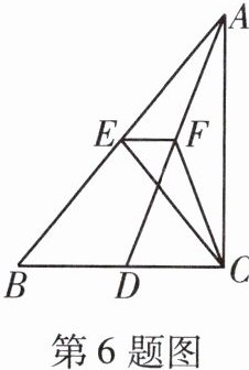 6. 如图,在 $\triangle ABC$ 中,$AB^{2}-BC^{2}= AC^{2}$,点 $D$ 是边 $BC$ 上一点,点 $E,F$ 分别是 $AB,AD$ 的中点. 若 $AB = 12$,$AD = 10$,$EF = 2$,则 $\triangle CEF$ 的周长是______
