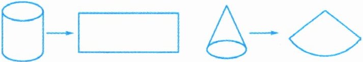 解:圆柱的侧面展开图是长方形,圆锥的侧面展开图是扇形.