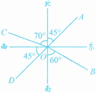 4. 如图,OA 是表示什么方向的一条射线?仿照这条射线画出表示下列方向的射线: