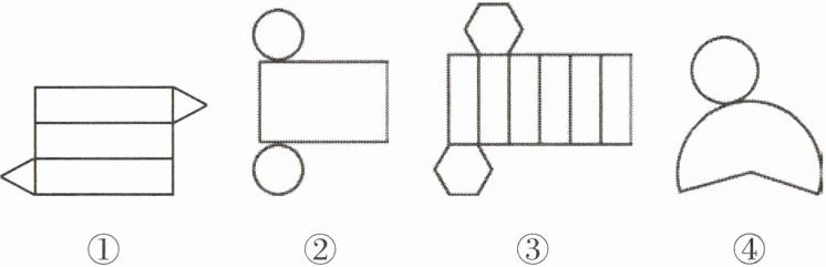 解:图①为三棱柱,图②为圆柱,图③为六棱柱,图④为圆锥.