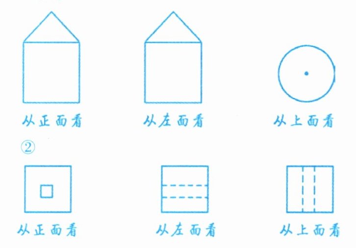 (1)以上三个图形中,从上面、左面、正面看到的平面图形分别是 _____ 、 _____ 、 _____ ;