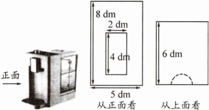例2 某品牌饮水机可以近似地看成一个长方体减去半个圆柱体,它从正面看和从上面看的图形如图所示,长方体的长为5 dm,宽为6 dm,高为8 dm,圆柱体的高为4 dm,底面直径为2 dm.
