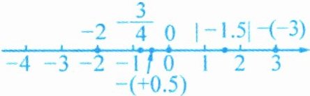 例2 画出数轴,用数轴上的点表示下列各数,并用">"将它们连接起来:-(-3),-2,|-1.5|,$-\frac{3}{4}$,0,-(+0.5). 解:∵-(-3)= 3,|-1.5|= 1.5,-(+0.5)= -0.5,∴在数轴上表示如下:∴