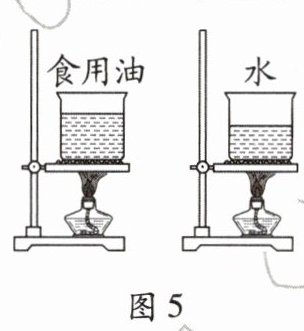 13. 如图5所示,为比较水和食用油的吸热能力,小明用两个相同的装置做了实验。