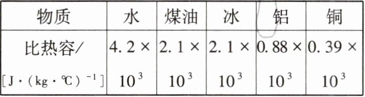 3. 下表列出了一些物质的比热容,其单位为J/(kg·℃)。根据表中数据可知,下列判断正确的是 (